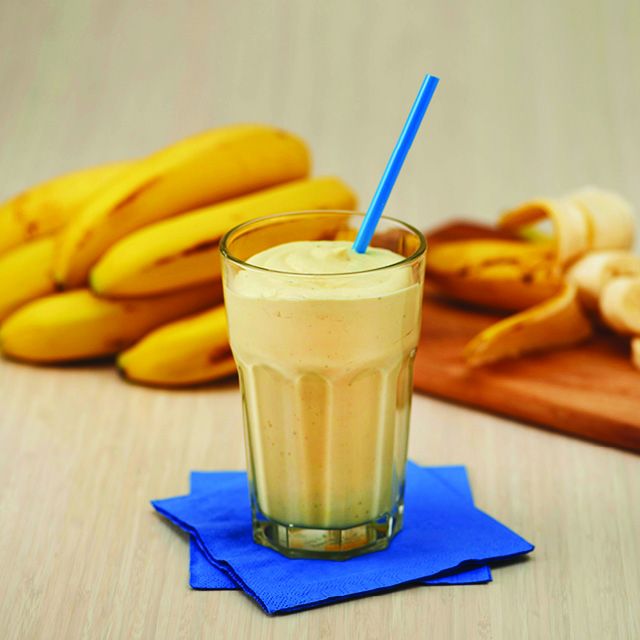 - Combine fat free milk, banana and dry milk powder in a blender container.