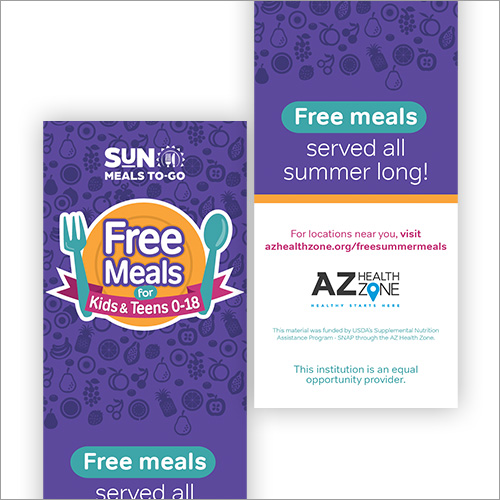This section includes professionally designed print materials to help you promote free summer meals to families in your community. These resources can be displayed at meal sites, schools, libraries, community centers, and other high-traffic areas to raise awareness and encourage participation in the Summer Food Service Program (SFSP).